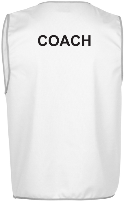 $20.00 Inc GSTLead with confidence in the Coach Vest. Crafted from durable 100% polyester tricot, it features a classic fit, two side pockets with Hook-Pile Tape closures, and contrast grey binding. White in colour with the FIDA logo on the front and “Coach” printed on the back.